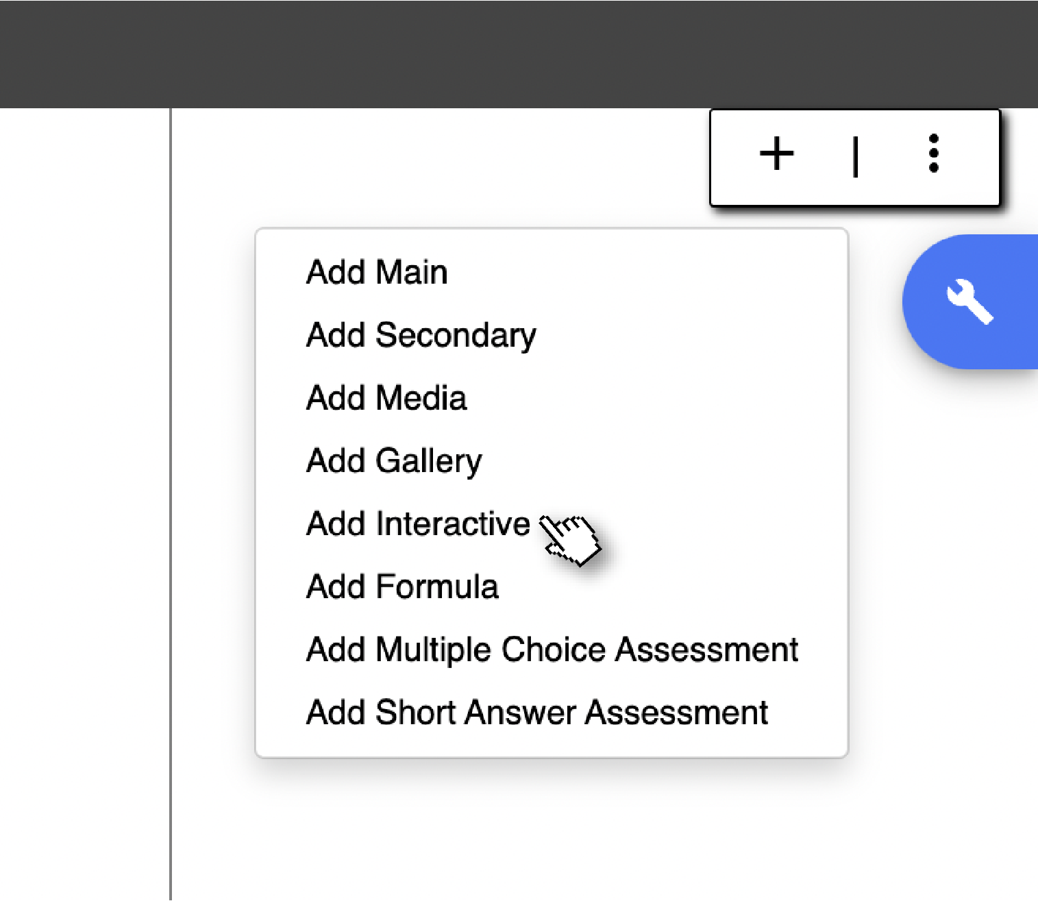 You can choose from a variety of existing interactives in the Builder's interactives library. And for any interactives you might want that aren’t currently available in the library, our team is available to help make your ideas a reality.